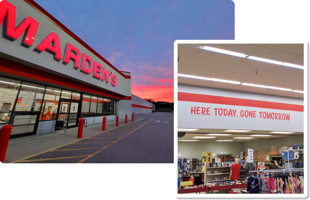 At Marden’s, we live for the thrill of the deal. We believe that every visit should be an exhilarating adventure filled with savings and unexpected finds. Our unique approach to inventory sourcing means that you never know what treasures await you around each corner. From quirky home goods to gadgets and everything in between, each Marden’s location is a retail playground where bargains and surprises are abundant.